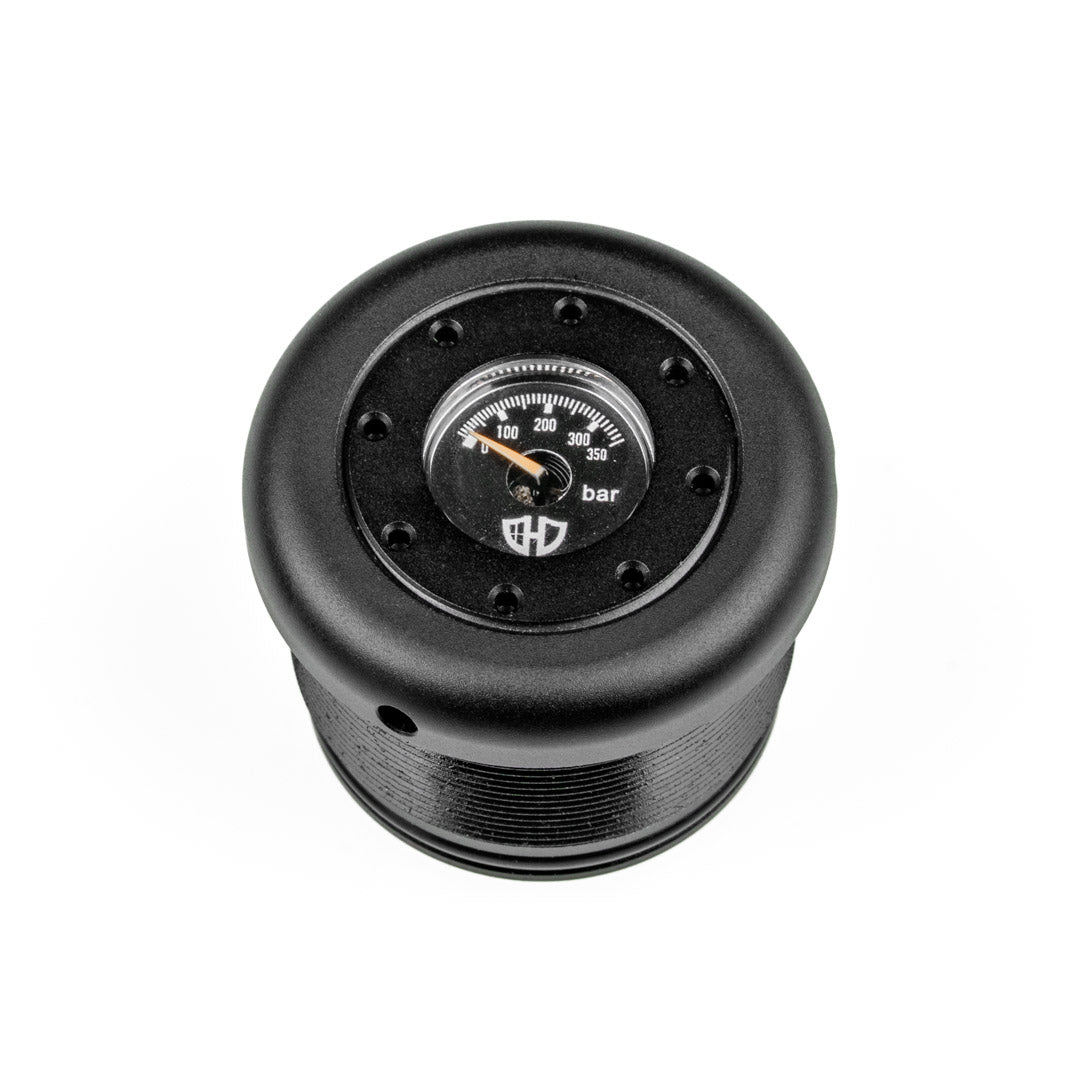 Tankdeckel inkl. Manometer | 350 Bar | ALU CNC | Schwarz eloxiert | AEA HP MAX 1 & 2 | MEGALODON