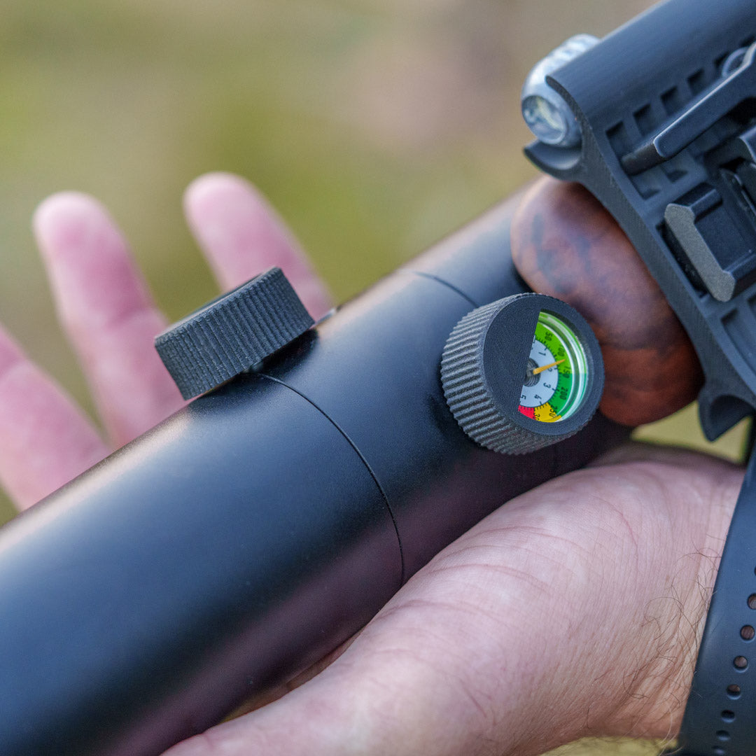 Die Abdeckkappe ist stylisch und bietet gleichzeitig Schutz für das Manometer (Druckanzeige) vor Stößen und Kratzern.