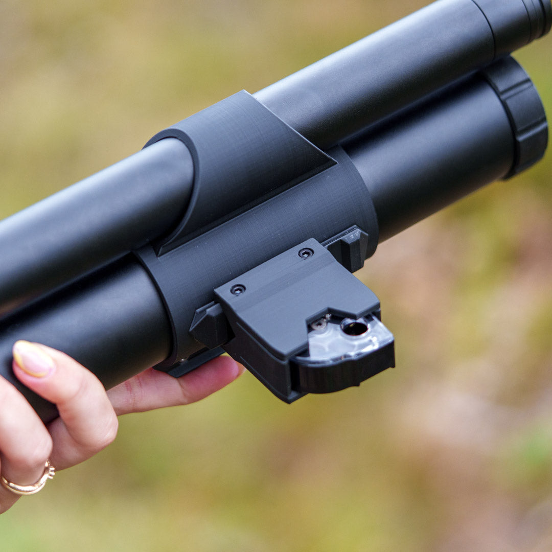 Dieser Magazinhalter wurde speziell auf die Picatinny Schiene unserer Bottle Clamps entwickelt und angepasst. NICHT für andere Bottle Clamps geeignet!