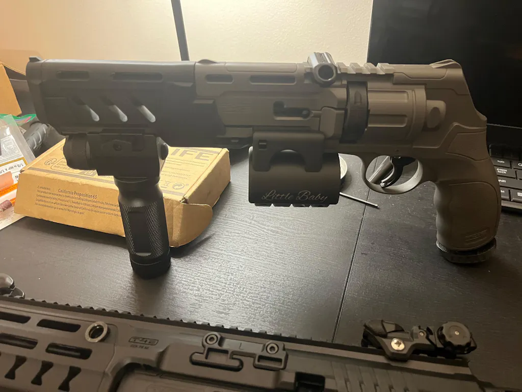 Das geringe Gewicht, von weniger als 45 Gramm, macht das #Little Baby# zu einem beliebten Immer-Dabei-Partner, und liegt dabei auch noch superergonomisch in der Hand. Voll geladen mit original Umarex-Trommeln und schwarzen Rubber-Balls bringt es gerade mal schlanke 145 Gramm (mit Tac-Mag-Trommeln sogar nur 107 Gramm) auf die Waage. Du kannst die Trommeln mit jeglicher handelsüblicher Munition laden. Für Kunden, die ausschließlich unsere Tuning-Trommeln verwenden, wird es ein eigenes Tac-Mag geben.