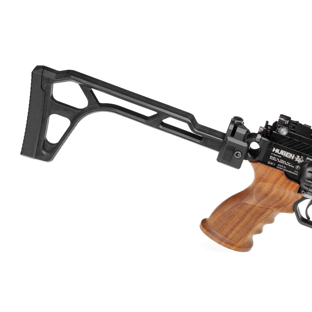 Unsere Ultralight Klappschaft ist die perfekte Ergänzung für deine Huben GK1. Mit nur ca. 215 g überzeugt er durch sein extrem leichtes Design bei gleichzeitig hoher Stabilität dank Aluminium-Basis und Polymer-Schaftkörper.